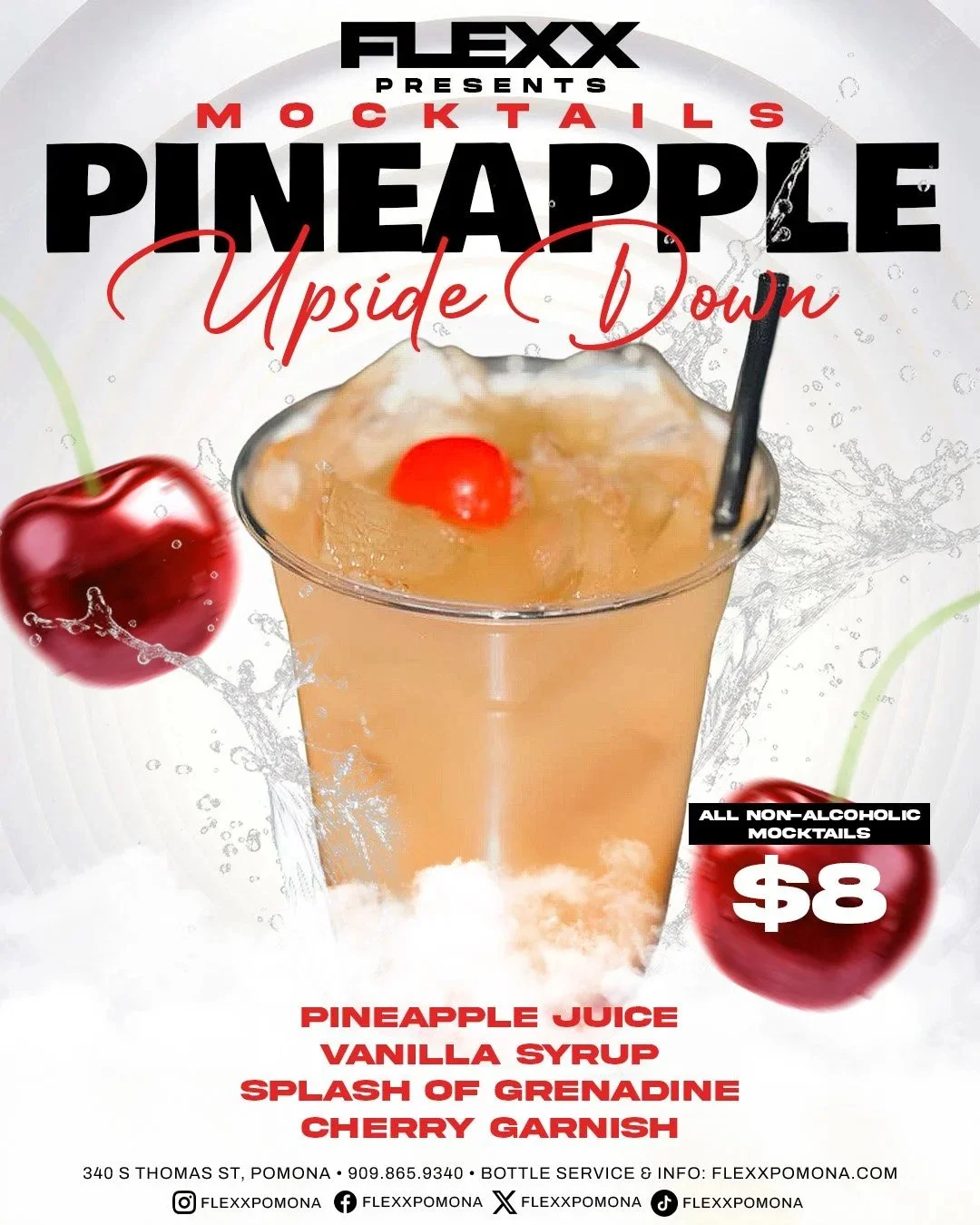 Classic, sweet, and a little cheeky. Pineapple juice and vanilla syrup with a splash of grenadine, topped with a cherry for good measure.